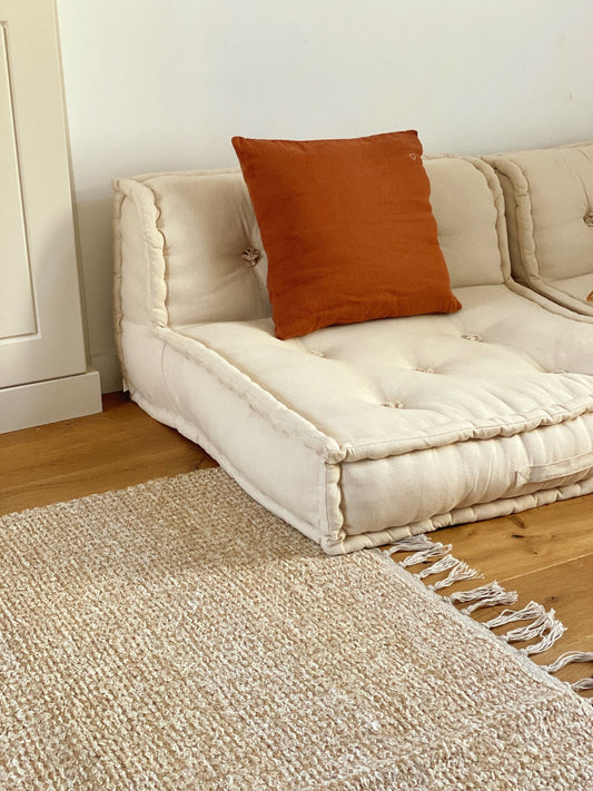 Tapis Nanda, jute & coton blanc, 150x200