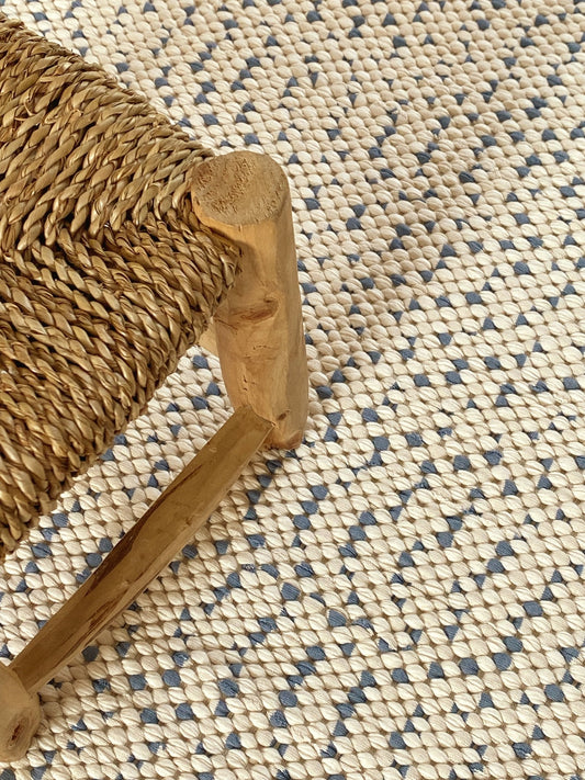 Grand tapis bleu ciel et écru à motif, boa vida PIECE UNIQUE