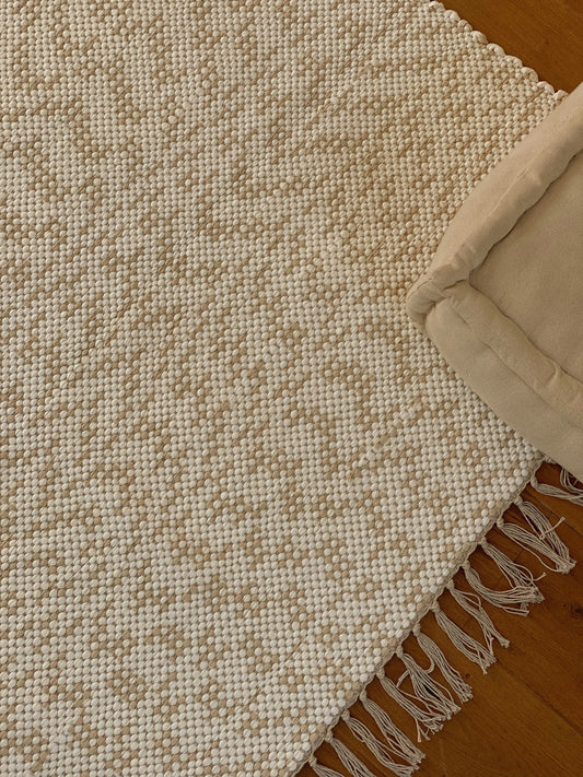 Grand tapis beige et écru à motif, boa vida PIECE UNIQUE
